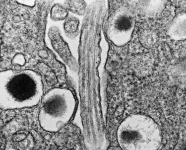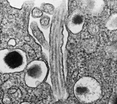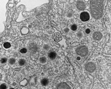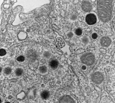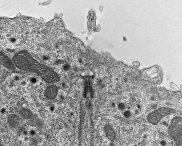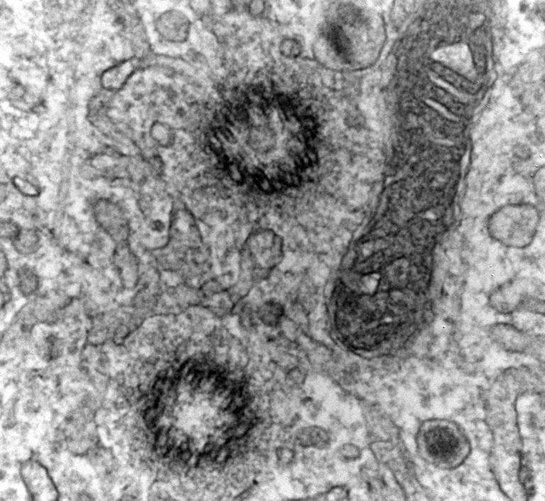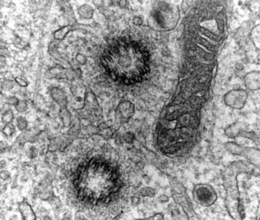 Most every islet cell has a primary cilium and pair of centrioles. When we find them on an EM grid, it's a good day.
